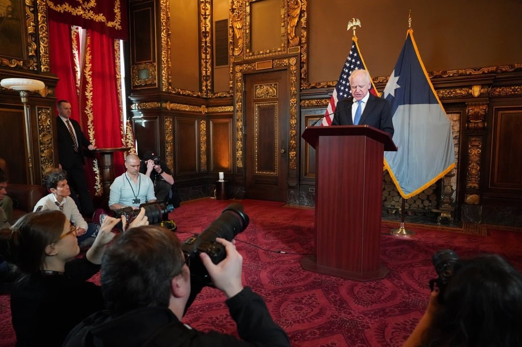 Walz did not take questions from reporters after speaking for about seven minutes, much of which involved repeating his earlier written statement announcing his decision.