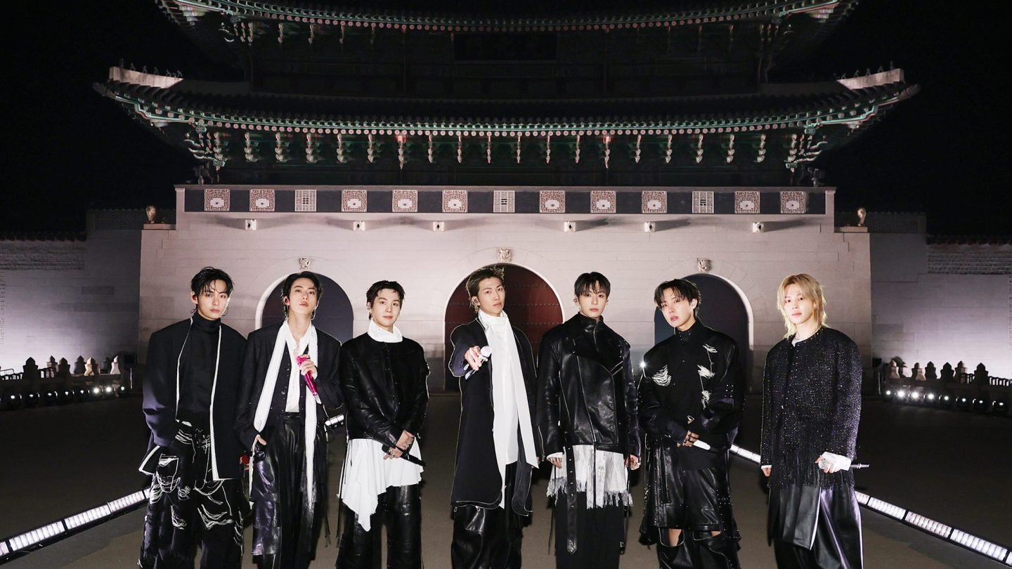 Starting with a sweeping shot of Seoul’s Joseon-era Gyeongbokgung Palace, the live stream kicked off eventually revealed the seven men of BTS standing in front of the palace. “Hello, Seoul,” the group’s leader RM told the crowd. “We’re back.”