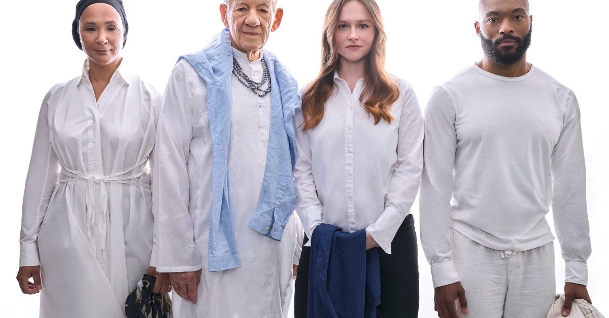 McKellen, Rosheuvel, Kene, and Sheehy play a quartet of people who have found themselves existing in a kind of transitional space somewhere between life and whatever comes after death. You, the audience member, complete their circle as a newcomer who doesn’t know anything about this metaphysical place, and you need to understand how your life story is a collection of experiences that aren’t all that unique to you. The characters are telling “your” story by recounting moments from their own lives, which become more specific and intense as the play unfolds.