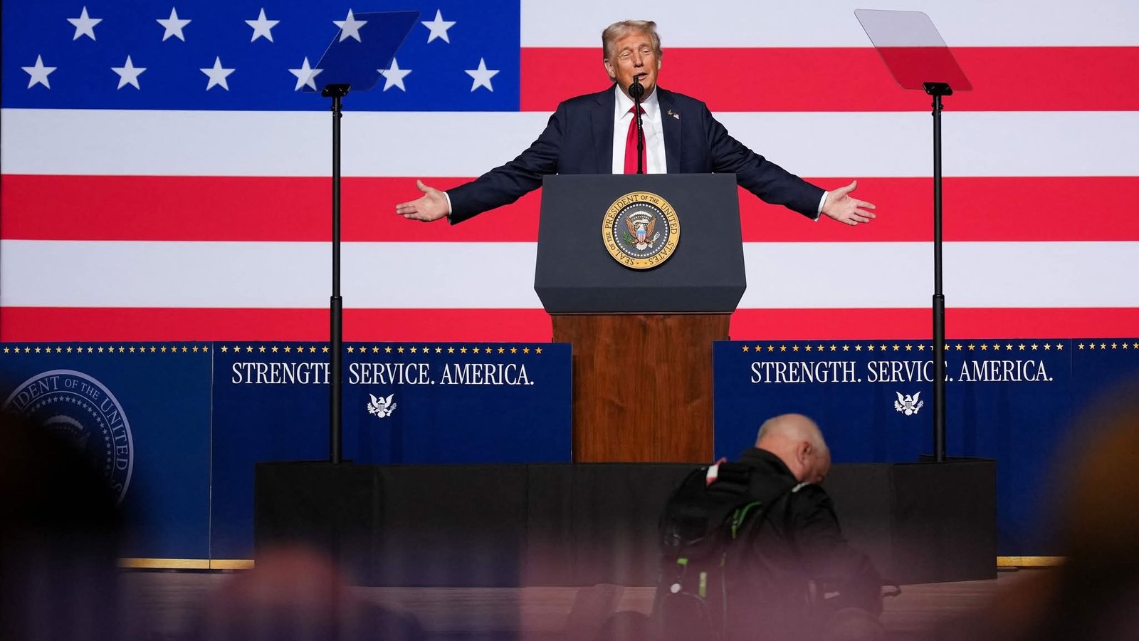 واشنگٹن: امریکی صدر ڈونلڈ ٹرمپ نے محکمہ جنگ میں دنیا بھر میں تعینات امریکی فوجی جنرلز سے خطاب کرتے ہوئے کہا کہ اگر کسی کو ان کی باتیں بری لگیں تو وہ اپنے عہدے اور مستقبل کو الوداع کہہ کر باہر جاسکتا ہے۔