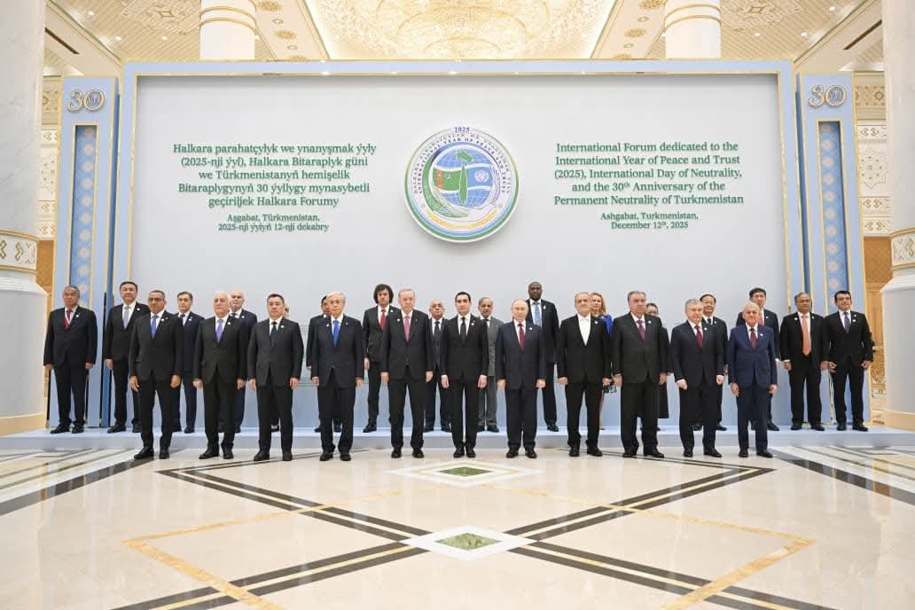 اشک آباد — ترکمانستان کے دارالحکومت اشک آباد میں انٹرنیشنل ایئر آف پیس اینڈ ٹرسٹ 2025، انٹرنیشنل ڈے آف نیوٹرلٹی اور مستقل غیرجانبداری کی 30ویں سالگرہ کے حوالے سے منعقدہ بین الاقوامی فورم میں وزیرِاعظم پاکستان محمد شہباز شریف نے عالمی رہنماؤں کے ہمراہ فیملی فوٹو میں شرکت کی۔