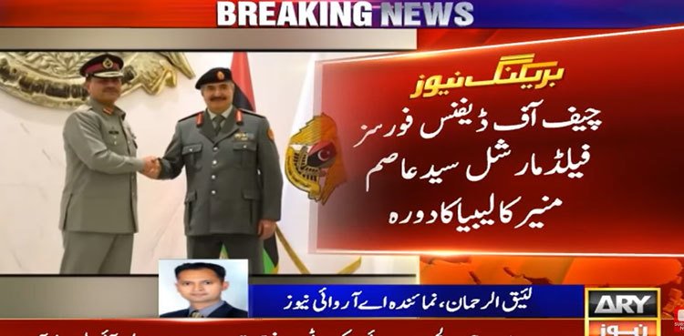 RAWALPINDI: Chief of Defense Forces (CDF) and Chief of Army Staff (COAS) Field Marshal General Syed Asim Munir arrived in Libya on an official visit, ARY News reported on Thursday, citing the Inter-Services Public Relations (ISPR).