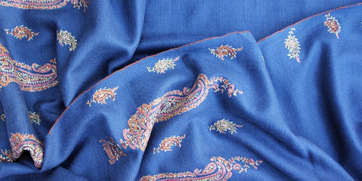 کشمیری پشمینہ شال، جس پر سوئی اور ریشم سے ہاتھ سے کڑھائی کی گئی ہے۔تصویر: وکی میڈیا کامنس