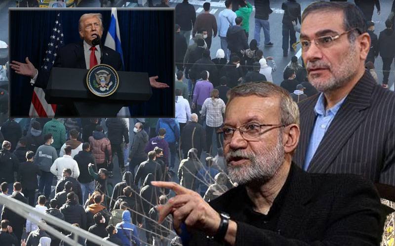 اسی دوران ایران کی قومی سلامتی کونسل کے سیکرٹری علی لاریجانی نے بھی صدر ڈونلڈ ٹرمپ کے حایرانی عوام کی مدد کیلئے ایران میں مداخلت کرنے کے بیان کے جواب میں ایکس پر کہا کہ اسرائیلی حکام اور ٹرمپ کے بیانات کے بعد پردے کے پیچھے ہونے والی سرگرمیاں اب واضح ہو چکی ہیں۔