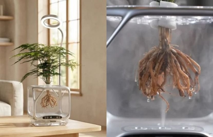 جو ہوا میں معلق ہوتی ہیں، جبکہ پودے کی افزائش کے لیے مٹی اور پانی کے بجائے ایک اسپرے کے ذریعے نیوٹرنٹ سے بھرپور بخارات کا استعمال کیاجاتا ہے جو ڈیوائس کے نیچے دیے گئے ہیں، یہ بخارات پودوں کو غذائیت فراہم کرتے ہیں اور افزائش میں مدد دیتے ہیں۔