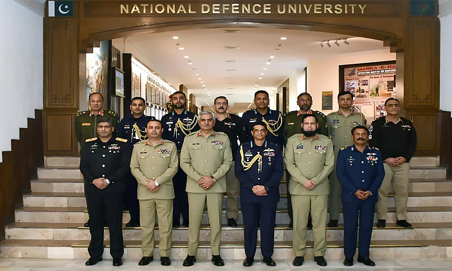 بنگلہ دیش ایئر فورس کے سربراہ ایئر چیف مارشل حسن محمود خان نے نیشنل ڈیفنس یونیورسٹی (این ڈی یو) کا دورہ کیا، جہاں انہوں نے این ڈی یو کے صدر لیفٹیننٹ جنرل بابر افتخار سے ملاقات کی۔