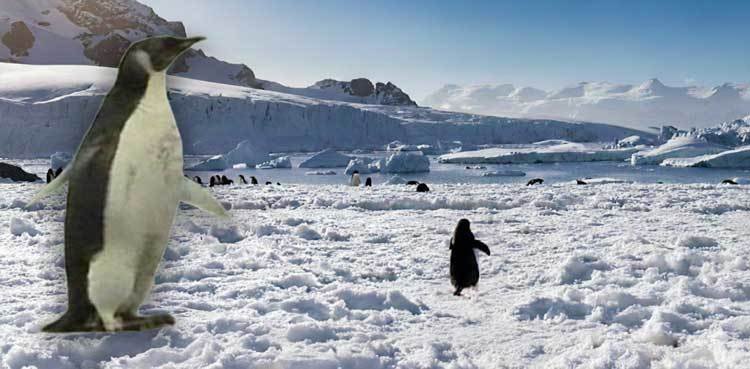 In the film, a penguin is shown wandering alone, disoriented, separated from its colony and continues walking towards the Antarctic mountain ranges, located at a distance.
