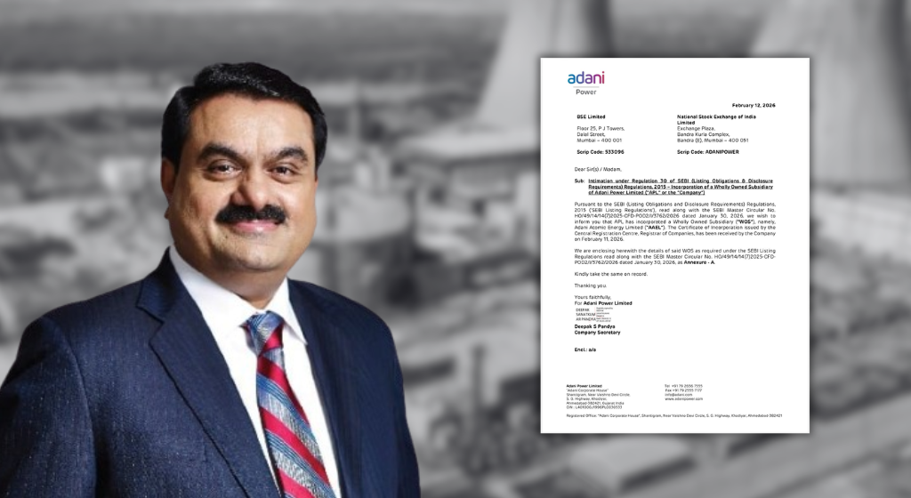 نیشنل اسٹاک ایکسچینج کو دی گئی اطلاع میں اڈانی پاور لمیٹڈ (اے پی ایل) نے بتایا کہ اس نے اپنی مکمل ملکیت والی  ذیلی کمپنی ’اڈانی اٹامک انرجی لمیٹڈ ‘کی تشکیل کی ہے۔