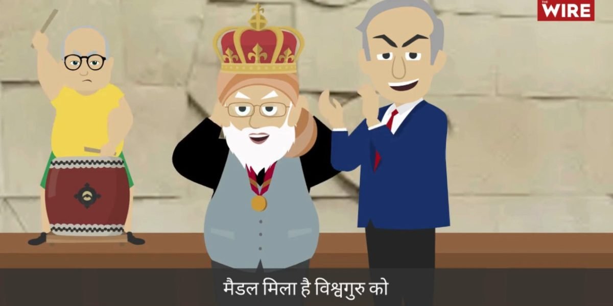 قابل ذکر ہے کہ 37 سیکنڈ کے اس کارٹون میں پی ایم مودی، کنیسٹ کے اسپیکر اور اسرائیلی وزیر اعظم بنجمن نیتن یاہو کو دکھایا گیا ہے۔ اسے فلم ’یادوں کی بارات‘ کے گانے ’چرا لیا ہے‘ کی دھن پر تیار کیا گیا ہے، جس کے بول ہیں: ’میڈل ملا ہے وشو گرو کو۔‘
