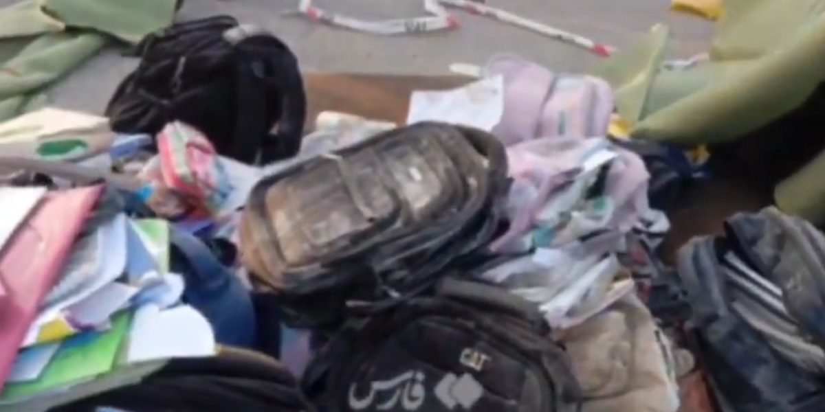 میناب کی طالبات کے اسکول بیگ۔ تصویر بہ شکریہ: ایکس / تہران ٹائمز