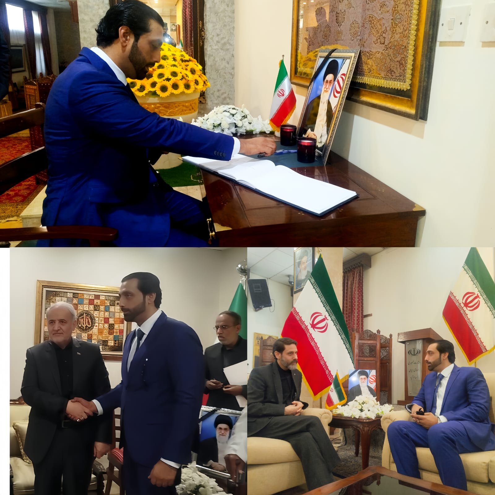یہ ملاقات اسلام آباد میں ایرانی سفارت خانے میں ہوئی، جہاں سفارت خانے کے سیکنڈ سیکرٹری اور پولیٹیکل آفیسر ہادی گلریز بھی موجود تھے۔ چیئرمین سینیٹ سید یوسف رضا گیلانی اور پاکستانی قوم کی جانب سے بات کرتے ہوئے سید یحییٰ حسین شاہ نے اس نقصان پر گہرے دکھ کا اظہار کیا اور کہا کہ پاکستانی قوم اس غم کی گھڑی میں ایرانی بھائیوں کے ساتھ کھڑی ہے۔