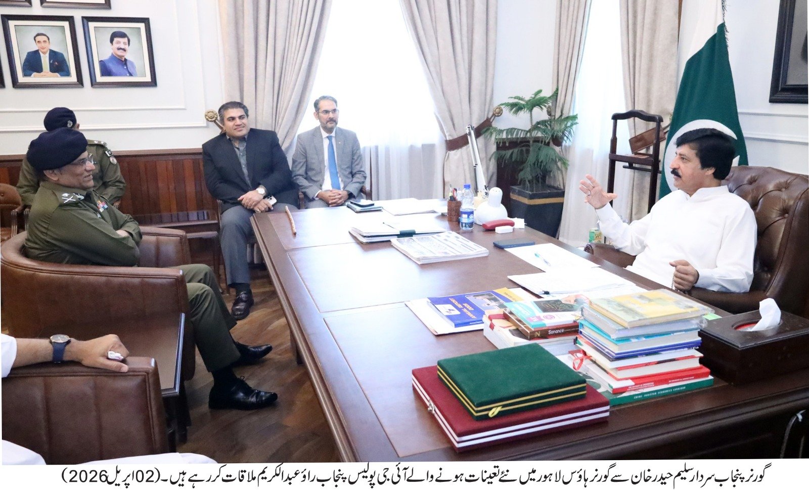 By Dr. Ansab Ali | Lahore, PakistanLAHORE: Punjab Governor Sardar Saleem Haider Khan has called on law enforcement agencies to ensure the protection of citizens’ lives and property, stressing the need for stronger and more effective measures to prevent crime across the province.The governor made these remarks during separate meetings with newly appointed Inspector General…